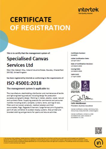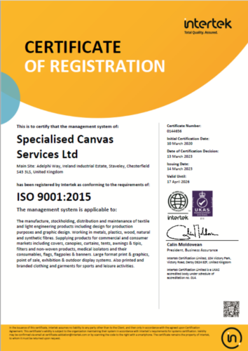 Paul Noble, Managing Director of Specialised Canvas Group commented, “regaining certification is great news for our group of companies which also includes Flagmakers and Banner Box Print Solutions. Specialised Canvas has a great history of providing our customers with premium quality sewn solutions and it is always great to have this recognised through an external audit.”